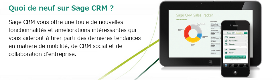 Sage CRM est l'offre de Gestion de la Relation Clients adaptée aux besoins de mobilité.