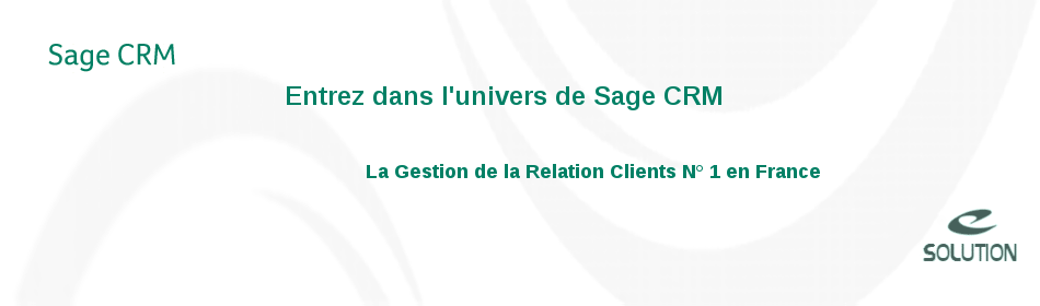 Spécialiste des produits Sage CRM en France, eSolution est votre partenaire privilégié pour le déploiement et l'intégration d'une solution professionnelle pour votre gestion de clientèle. Les équipes eSolution sont certifiées au plus haut niveau, à savoir "Hot Line" sur la gamme Sage CRM. Ce label vous permet d'être certain que vous trouverez des interlocuteurs techniques et commerciaux bénéficiant d'un grand savoir faire, tant d'un point de vue fonctionnel, organisationnel que purement technique.