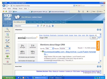transparente. Depuis votre Outlook, vous pouvez accéder à l'interface de Sage CRM.