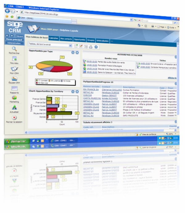 Avec Sage CRM, vous visualiserez en un coup d'oeil l'état d'avancement des affaires en portefeuille, et pourrez ainsi accroître votre réactivité face à votre marché !