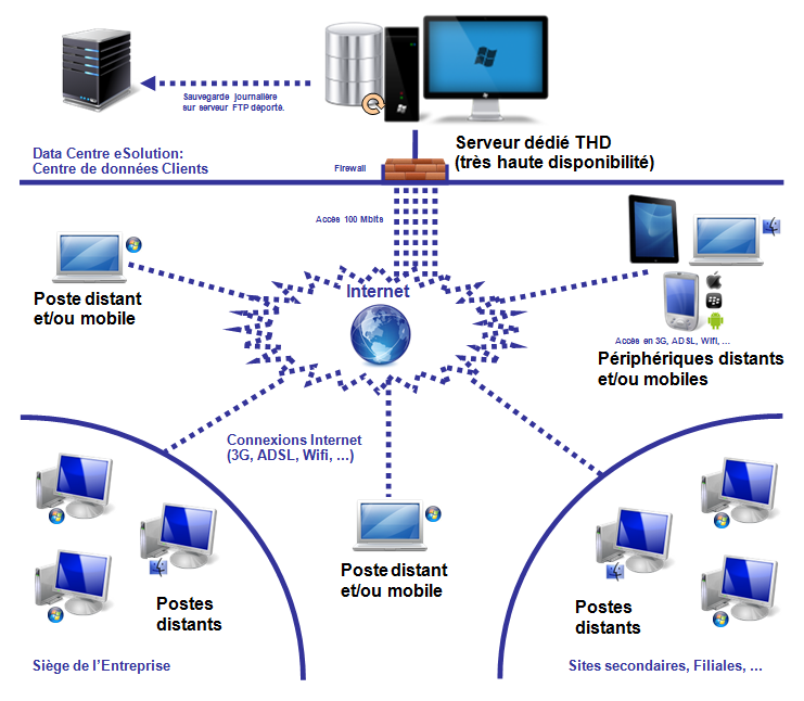 L'utilisation d'un serveur dédié dans notre Datacentre, vous garantie que votre machine et vos données ne sont accessibles que par votre entreprise. Enfin, en faisant le choix d'héberger vos données en France, vous garantissez la protection de vos données selon les lois françaises (la confidentialité des données n'existant notamment pas aux Etats-Unis).